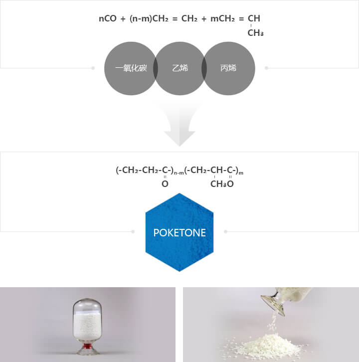 POKETONE的英文簡稱POK,中文名:聚酮,POKETONE是韓國曉星集團研發生產出的一種綜合性能極其優良的工程塑料,屬於聚酮類材料,是由CO、乙烯、丙烯聚合而成的新型綠色聚合物材料,是能夠使用於汽車燃油輸送管路、內外部裝修材料、電子電器部件、氣體阻隔包裝材料、管子等多種用途的ENPLA材料。
